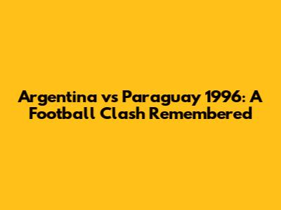 Argentina Vs Paraguay 1996: A Football Clash Remembered