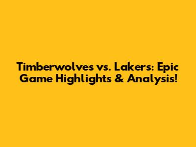 Timberwolves Vs. Lakers: Epic Game Highlights & Analysis!