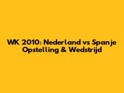 WK 2010: Nederland Vs Spanje Opstelling & Wedstrijd